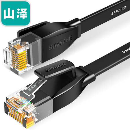 山泽(SAMZHE)六类网线 CAT6类千兆无氧铜扁平网线 电脑/家装/宽带网络连接跳线 黑色15米HBP615