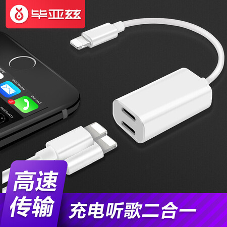 毕亚兹(BIAZE) 苹果7转换器充电听歌二合一Lightning转双Lightning iPhoneX分线器转接头 一拖二转接线 P2-白