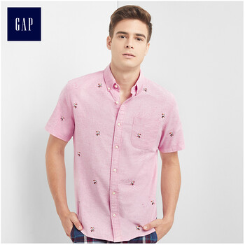 GAP旗舰店 男装 基本款舒适弹力牛津布短袖衬衫272538 纯粉色 L