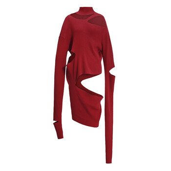 XIMONLEE 2018秋冬系列 酒红 露肩 不规则袖 拼接 针织 S
