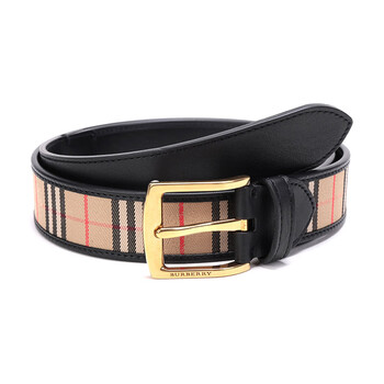 BURBERRY 巴宝莉 男款黑色格纹织物配皮针扣式皮带腰带 40799151 105cm