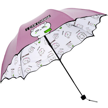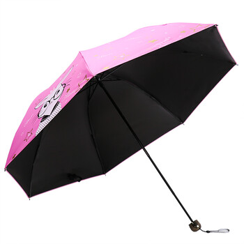 天堂伞 全遮光碰击布黑胶萌兔三折蘑菇遮阳伞太阳伞晴雨伞 玫红706ELCJ