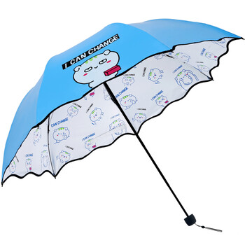天堂伞 彩胶(UPF50+)转印三折太阳伞晴雨伞31835E湖兰色