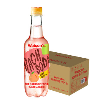 屈臣氏(Watsons)蜜桃汁苏打汽水 碳酸饮料 调酒净饮推荐 420ml*15瓶 整箱装 京东专供定制款