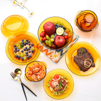 DURALEX 多莱斯 餐具套装碗盘套装微波炉适用 法国进口餐具套装家用四人10件套 琥珀色