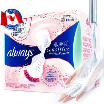 护舒宝(Always)量多日用/夜用 新护肤级粉色液体卫生巾敏感肌系列 270mm 14片(欧美原装进口)