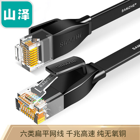 山泽(SAMZHE)六类网线 CAT6类千兆无氧铜扁平网线 电脑/家装/宽带网络连接跳线 黑色1米HBP601