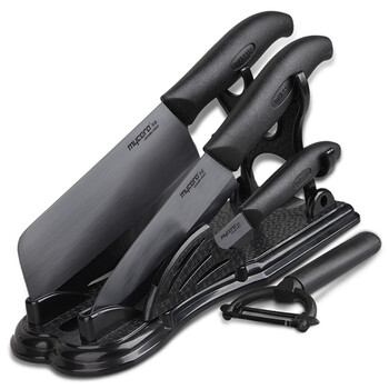 美瓷(MYCERA)陶瓷刀五件套 陶瓷刀菜刀厨师刀水果刀削皮器刀架 (黑刀黑柄)TES04B-B