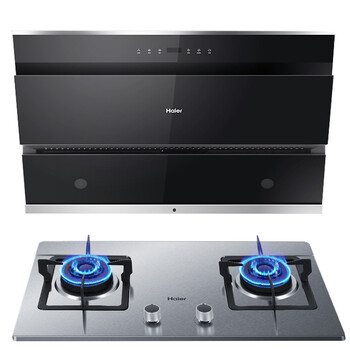 海尔(Haier)20爆炒大吸力 自清洗 液晶触控 侧吸式抽油烟机 配不锈钢 烟灶套装C3J05+QE7G(液化气)
