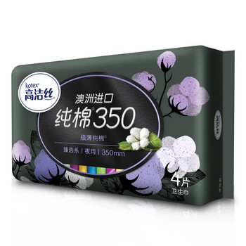 高洁丝(Kotex)臻选系列丝薄纯棉卫生巾夜用350mm4片装