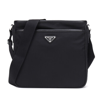 PRADA 普拉达 男士黑色织物邮差包单肩斜挎包 2VH269 064 F0002 V OLO