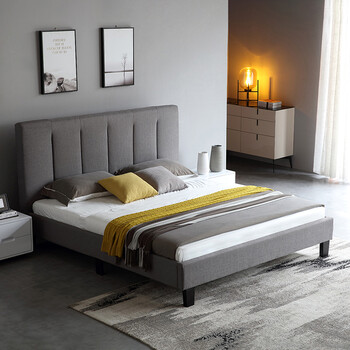 A家家具 床 北欧卧室家具实木脚布艺床 现代简约软靠大床软包双人床 1.8米单床 浅灰色 DA0173
