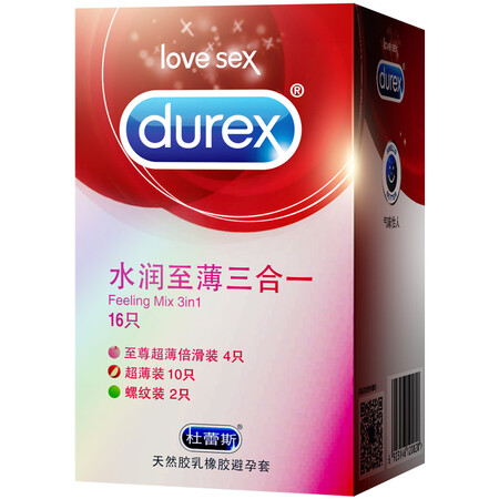 杜蕾斯 避孕套 套套 男用 安全套 超薄 计生用品 水润至薄三合一 16只装 成人用品 Durex
