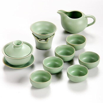 金镶玉 功夫茶具 美人知足汝瓷套组 原矿汝窑开片公道杯盖碗壶茶杯整套