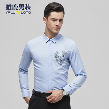 雅鹿男装 YALU UOMO 长袖男士衬衫 2019春季新款男装印花方领蓝色薄款上衣 DD1CD045S 天蓝色 41