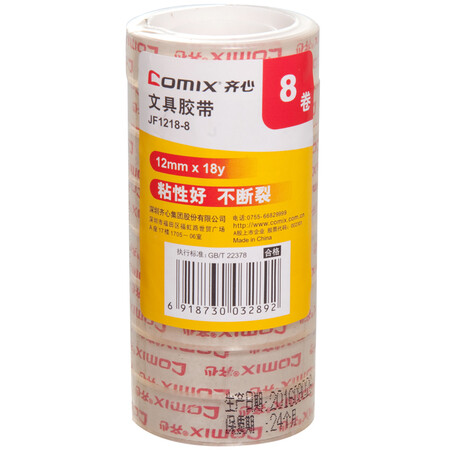 齐心(COMIX) 8卷装 12mm*18y(16米)高透明胶带 学生文具小胶带 办公文具 JF1218-8