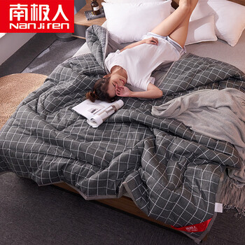 南极人(NanJiren)被子空调被夏凉被春秋被单双人夏季儿童薄被子夏天羽丝绒被芯被褥 小灰格 150*200cm