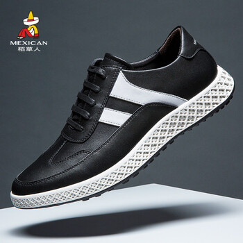 稻草人 MEXICAN 休闲皮板小白鞋男子韩版潮流透气轻质平底 FY5858 黑色 38