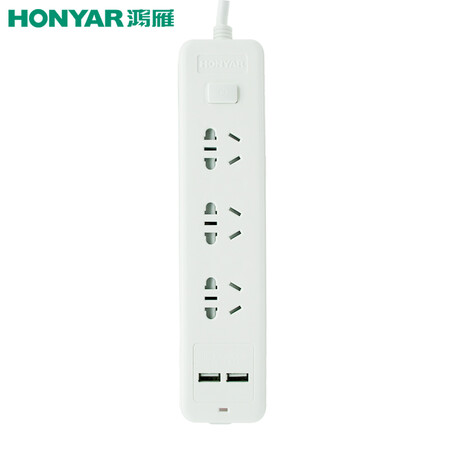鸿雁(HONYAR)ZDK301U-18 智能2口(5V2.4A)USB+3位1.8米插座 儿童保护门 插排插线板/拖接线板