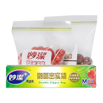 妙洁 密实袋保鲜袋中号 加厚双封条6只装体验装