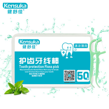 健舒佳(Kensuka)洁齿牙线棒 细滑纤维圆线 高拉力耐用 (薄荷味)50支/盒