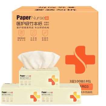 纸护士 医护本色抽纸 无漂白竹浆 3层100抽面巾纸*18包(小规格)整箱销售 妇婴适用