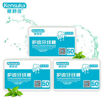 健舒佳(Kensuka)洁齿牙线棒 细滑纤维圆线 高拉力耐用 (薄荷味)50支/盒*3