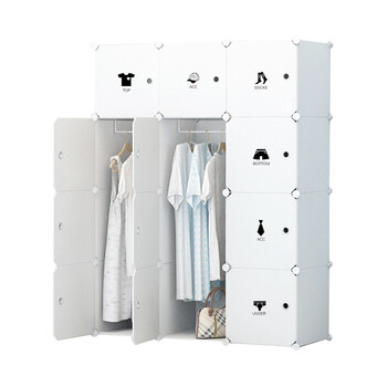 庭好 tinghao 简易卧室衣柜贴纸DIY组装塑料加深儿童储物收纳箱折叠大号12格