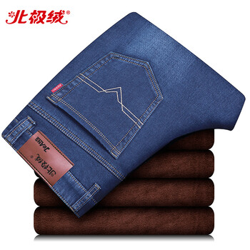 北极绒(Bejirong)加绒牛仔裤 男士修身2018冬季新款修身裤子商务休闲男士加绒加厚长裤子 009蓝色 40
