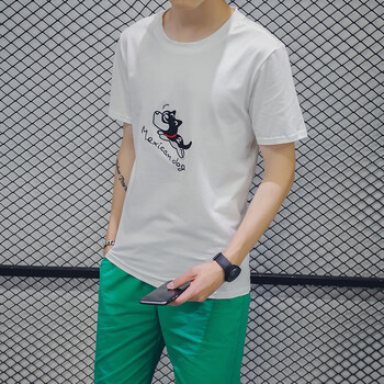 俞兆林 短袖T恤男 2019夏季短袖t恤男休闲男装圆领动物印花衣服男T恤 YMTD192503 白色 XL