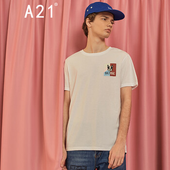 A21 以纯男装休闲趣味印花修身短袖T恤 4721330030 特白 170/84A/M