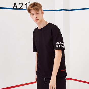 A21 以纯夏季男装简约百搭撞色印花圆领短袖T恤 4821330068 黑色 170/84A/M