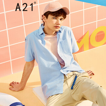 A21 男装修身纯色短袖衬衫男 4821180008 粉蓝 170/84A/M
