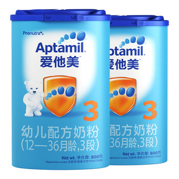 爱他美(Aptamil) 幼儿配方奶粉(12–36月龄,3段) 800g*2罐