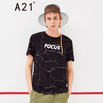 A21 以纯男装潮流大理石纹英文印花圆领短袖T恤 4821330169 黑色 165/80A/S
