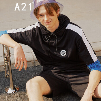 A21 夏季男装潮流落肩连帽短袖宽松透气短袖T恤 4821330172 黑色 175/88A/L
