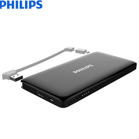 飞利浦10000毫安 移动电源/充电宝 双USB输出 自带苹果安卓线 聚合物 DLP6101黑色 适用安卓/苹果/手机/平板等(高配版)