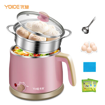 优益(Yoice) 304不锈钢电煮锅电火锅电蒸锅多功能电热锅学生宿舍煮面锅电热杯1.5L 迷你电热锅 Y-DZG13带蒸笼