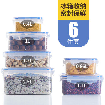 龙士达 微波炉饭盒保鲜盒 透明塑料密封罐便当盒米桶6件套装【860ML+1700ML+400ML+1100ML+2500ML+1000ML】
