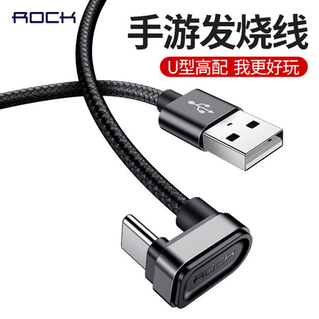 洛克(ROCK)Type-C数据线 安卓游戏手机充电线 支持华为P10/Mate10/荣耀9/三星S9/小米6/Mix2s 1米 黑