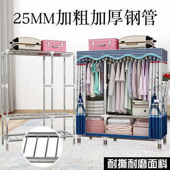 梦卡莱 布衣柜钢管加厚加粗25mm高承重简易柜子衣橱收纳可水洗涤组合简易单人衣柜1.05米