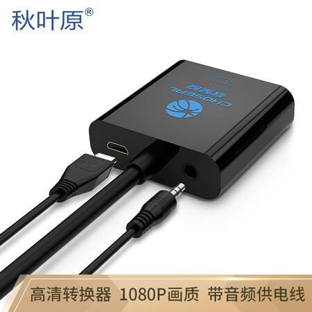 秋叶原(CHOSEAL)HDMI转VGA线转接头 高清视频转换器带音频线带供电 电脑盒子连接线电视显示器投影仪QS6934