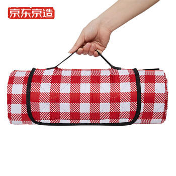 京东京造 野餐垫 可水洗公园防潮垫帐篷垫子轻便收纳野 户外加大地垫红白格子200*150cm