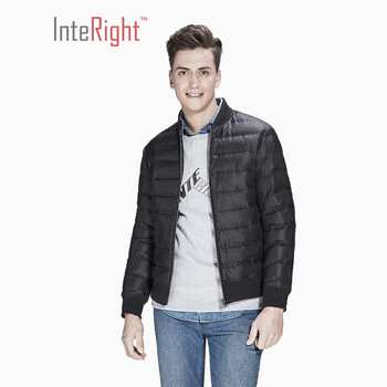 INTERIGHT 90白鸭绒 棒球领 无缝羽绒服 男士羽绒外套 黑色 XL