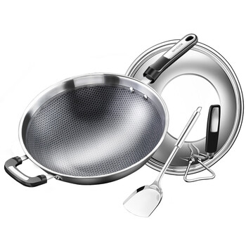 美厨(maxcook)不粘炒锅 不粘锅32cm304不锈钢可用铁铲少油烟带可立盖炒菜锅 电磁炉通用MCC971