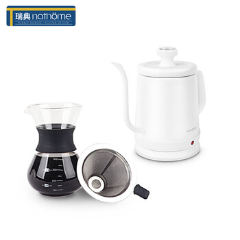 北欧欧慕(nathome)咖啡机家用手冲咖啡壶 滴滤咖啡壶套装 NSH1808+NDL01 白色