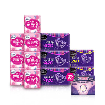 高洁丝 Kotex 亲亲棉卫生巾日夜用箱装12包98片(日用240 70片+夜用280 16片+超长夜用420 12片)