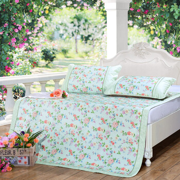 富安娜出品馨而乐家纺 双人夏天凉席软凉席印花席三件套装 1.8m床夏凉席可折叠空调席子 1.8米床 180*200cm
