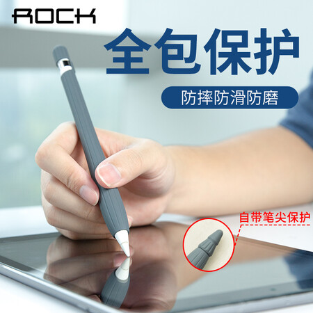 洛克(ROCK)苹果apple pencil笔套保护套ipad pro笔头帽套硅胶 ipencil防丢配件 笔套+笔头保护套 灰色