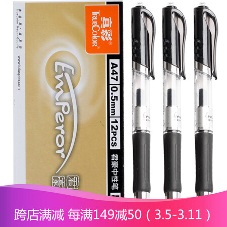 真彩(TRUECOLOR)君豪0.5mm黑色中性笔 12支/盒A47